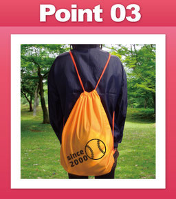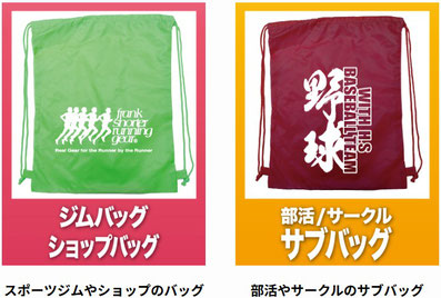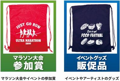 マラソン大会の参加賞やスポーツイベントグッズに大好評!ナップサックとして大会やイベント後も活躍します!