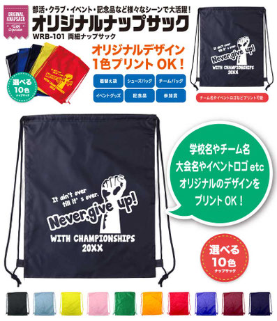 ぜひこの機会に、Tシャツやウェアに加えて「オリジナルナップサック」をラインナップに取り入れていただき、さらなるPR・販売促進にお役立てください!